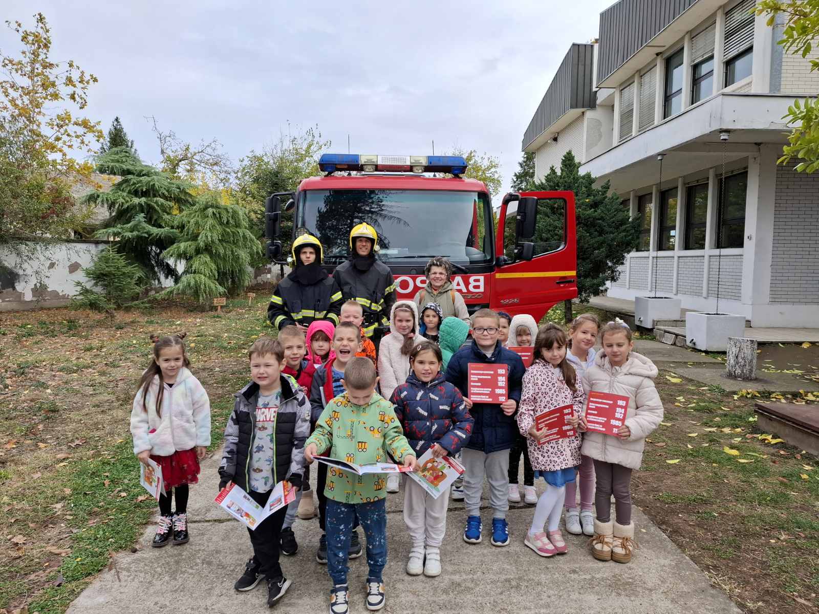 Дружење предшколаца данас у школи са ватрогасцима. Било је дивно, занимљиво и врло духовито. Деца су показала висок ниво познавања занимања ватрогасаца. А и шалили смо се много. Било им је лепо.Имали су много питања. Хвала драгим гостима на посети, дружењу и мноштву нових информација.