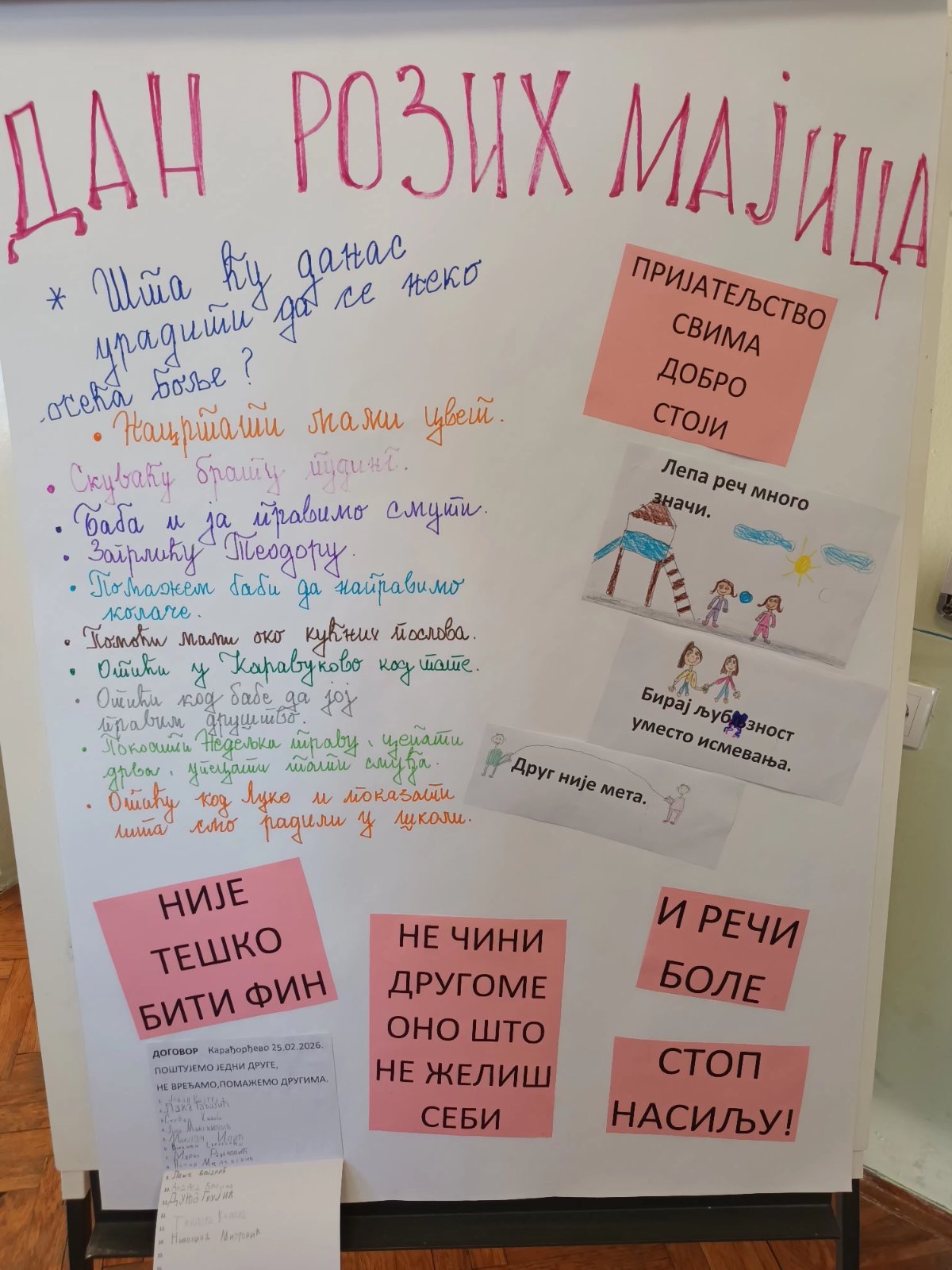Активности поводом Дана ружичастих мајица успешно су реализоване и у потпуности су испуниле постављене циљеве. Ученици су показали разумевање теме и спремност да примењују усвојене вредности у свакодневном школском окружењу. Овакве активности доприносе стварању безбедне, подстицајне и пријатне школске климе.